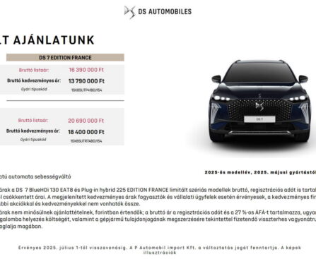 Ilyet is ritkán írunk le! De jobb az ára Magyarországon mint Spanyol piacon! Magyaroszágon: DS 7 EDITION FRANCE BlueHDi 130 dízel most 13 790 000 Ft-tól A DS 7 a DS Automobiles Nyári Kiállításán exkluzív, technológiai felszereltséggel és számos apró részlettel tündököl, amelyek utazásra csábítanak. Belül a márka szakértelmét és szakértelmét demonstrálja, a kiterjedt kényelmi […]